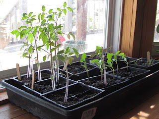 I have all but given up on the garden. There are finally some tomatos on the vine. . so maybe they will ripen before a frost next month. I also have lots of peppers still, and okra. My husband has been sauteing the okra, and it is pretty tasty, if you can get around the slimy texture. .even the kids eat them. We are picking a few watermelon yet too. The tomatoes are getting large in the bay window. .and need to be transplanted in the greenhouse soon. I sowed flats of chives, parsely, oregano, broccoli, and cabbage last week. None of them are up yet. .I'm starting to worry. I have seen the Bright Lights Swiss Chard sprouts. .but yesterday when I went to water, I noted the tops were eaten off. .must have a mouse in there. I have left the doors open all summer to vent it. .first because they were broken. .but then because the self-opening windows weren't working. .so I'm sure there is a little nest somewhere!